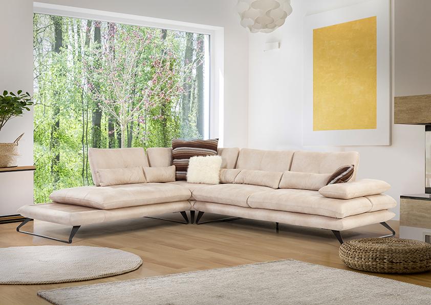 Garnitura posjeduje mehanizam pomicanja leđonaslona i rukonaslona čime je postignut dodatan prostor za sjedenje/ ležanje. Na drugoj strani kutna garnitura završava dekorativnom pločom koja dodatno doprinosi estetici samog proizvoda.