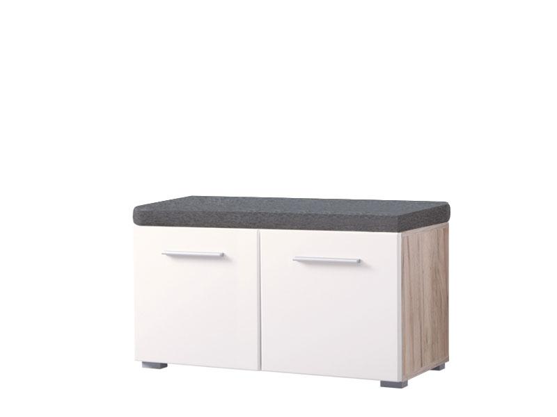 Element predsoblja u sivom hrast dezenu sa bijelom lak folijom, poseduje praktičan zatvoren dio za odlaganje obuće, kao i tapaciranu površinu. Može se kombinovati sa elementima iz kolekcije koji zaokružuju interijersku priču ulaza u vaš dom.