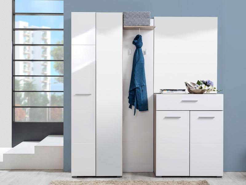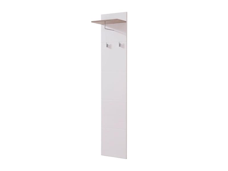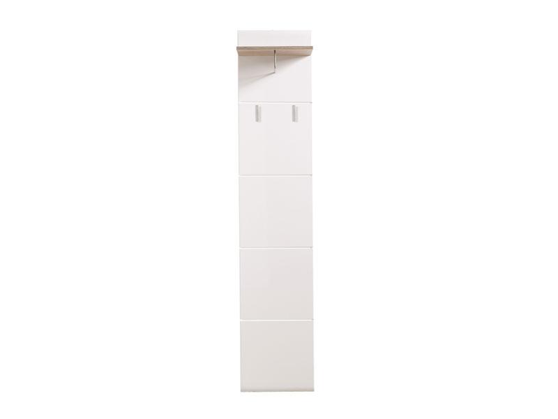 Element predsoblja u sivom hrast dezenu i sa lak bijelom folijom, unijet će u vaše predsoblje svježinu i eleganciju, kao i praktičnu notu zahvaljujući kačilicama za odlaganje garderobe. Može se kombinirati sa elementima iz kolekcije koji zaokružuju interijersku priču ulaza u vaš dom.