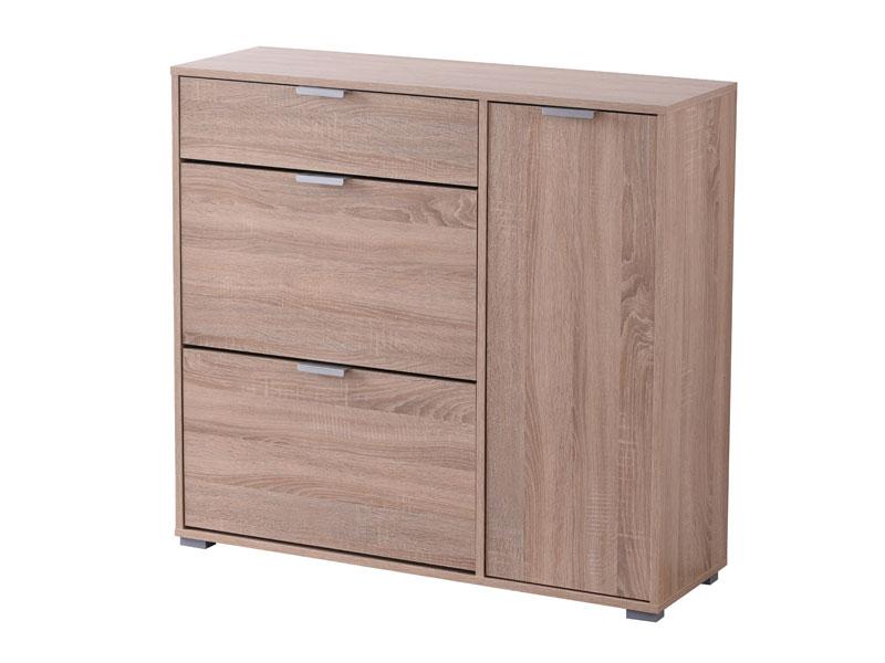 Cipelar u sonoma hrast dezenu, idealno je rešenje za uklapanje u prostore različitih dimenzija. Ovaj model posjeduje dva segmenta za odlaganje obuće, praktičnu fioku i desno pozicioniran dio sa dvije police.