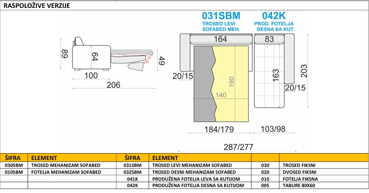 Garnitura sa mehanizmom za razvlačenje u tri preklopa sa rotirajućim naslonom!