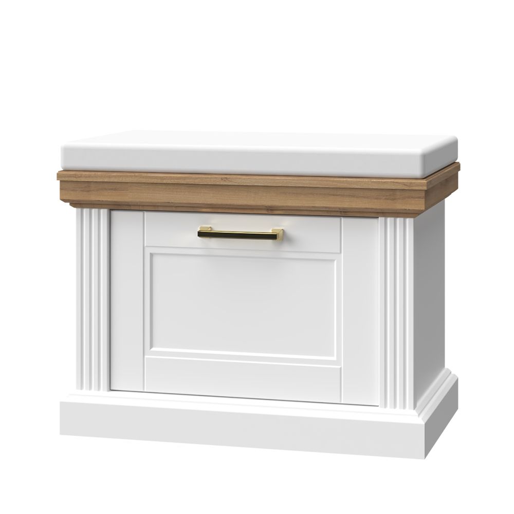Komoda za predsoblje iz kolekcije TARA sa jednim krilom i tapaciranim jastukom za sjedenje.