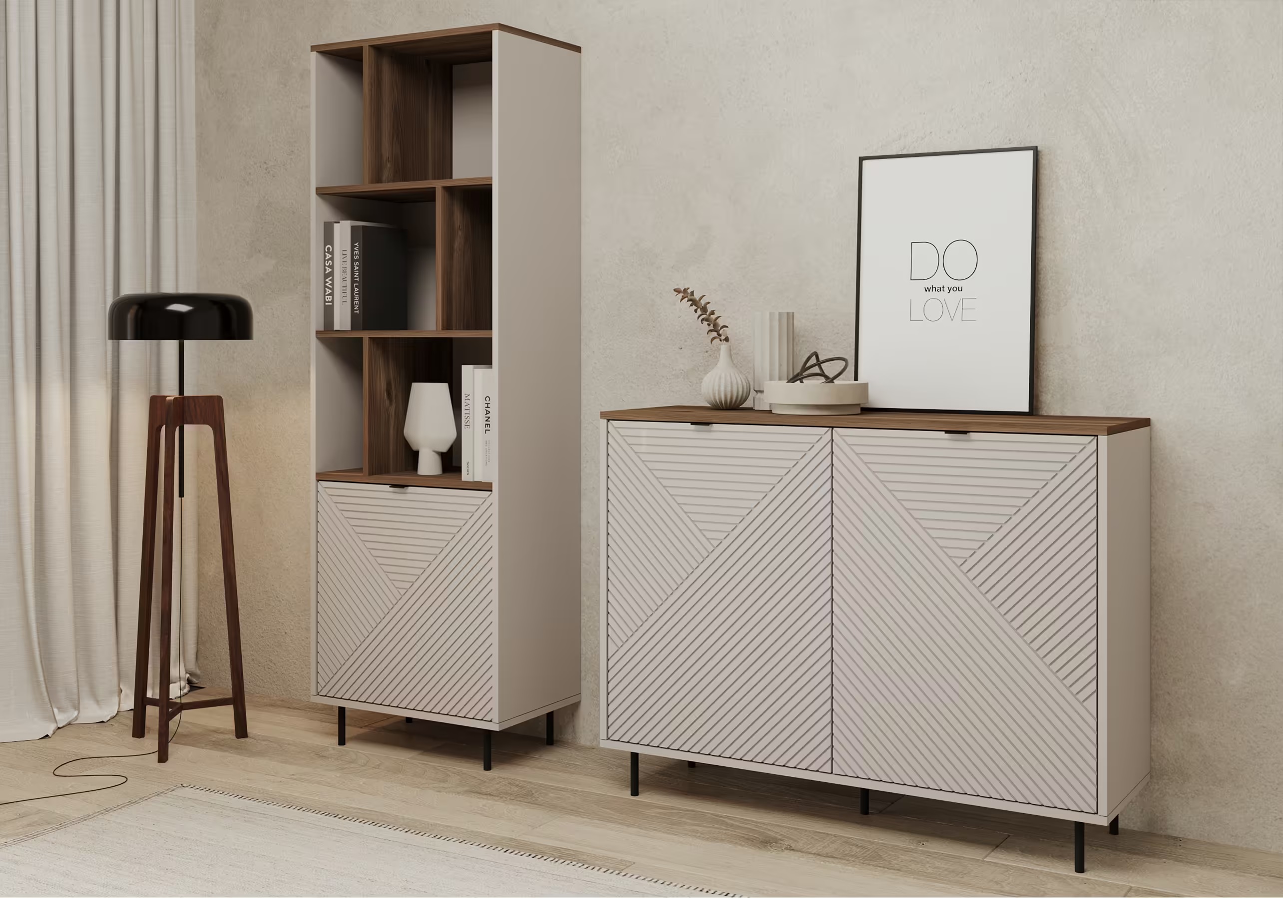 – Posjeduje soft close mehanizme, dekorativne metalne ručice i metalne nogice