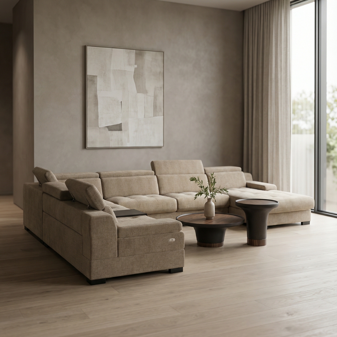Modularna ugaona garnitura koja predstavlja savršen izbor za one koji žele da u svom domu imaju modernu i funkcionalnu garnituru sa izvanrednom udobnošću. Ova garnitura se sastoji od modularnih elemenata, što znači da se može prilagoditi bilo kom prostoru, od malih stanova do velikih dnevnih boravaka.