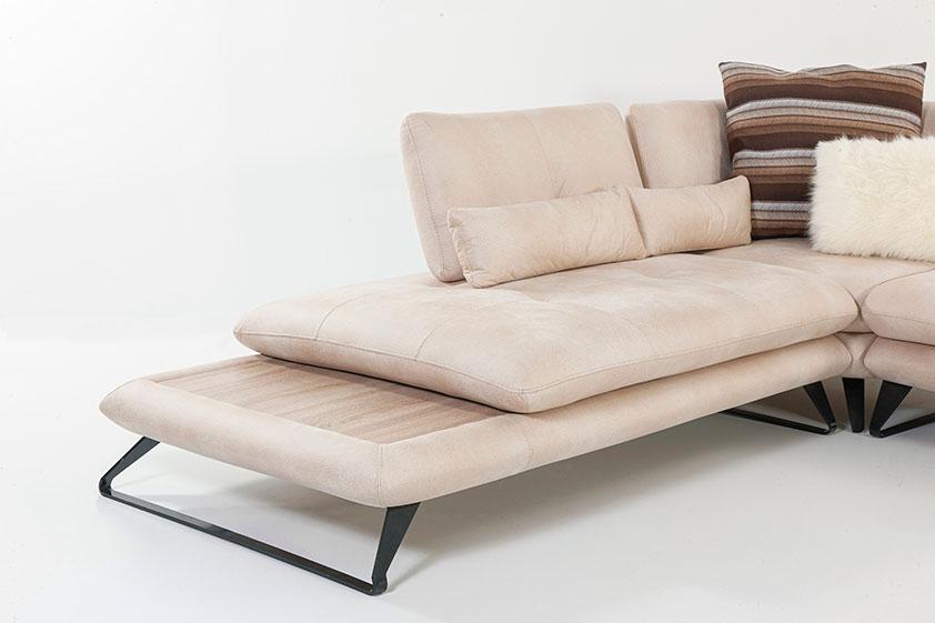Garnitura posjeduje mehanizam pomicanja leđonaslona i rukonaslona čime je postignut dodatan prostor za sjedenje/ ležanje. Na drugoj strani kutna garnitura završava dekorativnom pločom koja dodatno doprinosi estetici samog proizvoda.