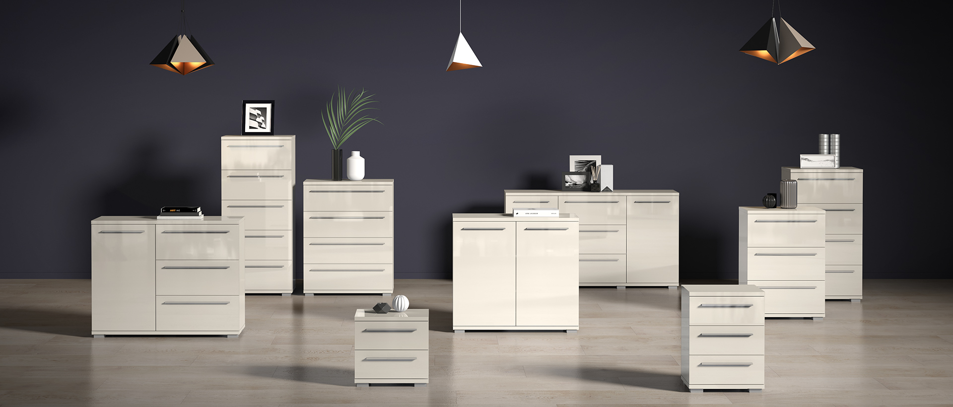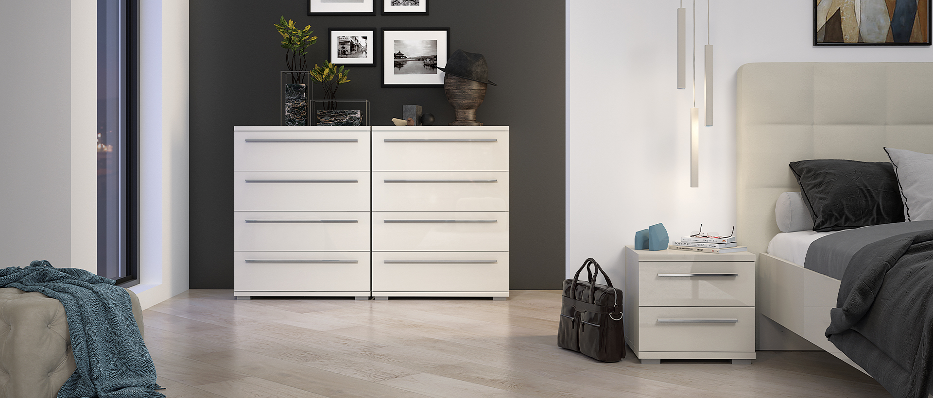 Veliki izbor elemenata kolekcije Piano može se naći u bilo kom dijelu Vašeg stana. Modularni dizajn za beskrajnu slobodu. Spavaća je moguća u dvije boje: bež lak i kristalno bijela.