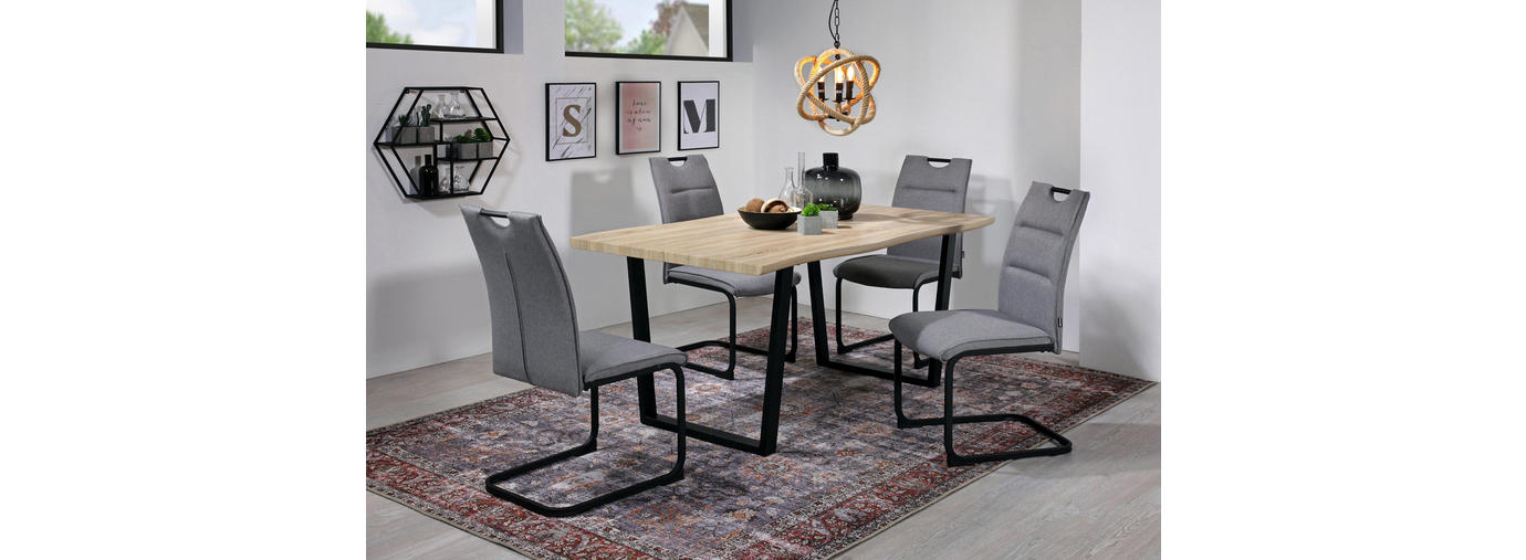 Blagovaonica je mjesto gdje se često okupljate s prijateljima ili članovima obitelji u vrijeme ukusnih obroka ili zabavnih druženja. Stoga je osobito važno odabrati praktičan i kvalitetan namještaj. Stol za blagovaonicu "Cain", koji je dio robne marke CARRYHOME, postat će središnjim mjestom okupljanja. Zahvaljujući kombinaciji crne boje i boje hrasta, uklopit će se u svaki stil uređenja. Izrađen je od kombinacije lijevanog željeza i kvalitetnog drvenog materijala. Stabilnost mu daju crne plosnate noge u obliku slova "u", koje su u kontrastu s pločom stola, debljine cca 38 mm i maksimalne nosivosti do cca 60 kg težine, čime se postigao jednostavan, ali efektan dizajn. Uživajte u zajedničkim trenucima druženja sa svojim najdražima.
