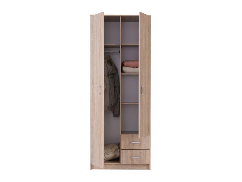 Model dvokrilnog ormara HANA u sonoma hrast dezenu, sa garderobnom šipkom, tri zatvorene police i dvije fioke, namijenjen je za odlaganje odjeće i posteljine. Racionalna organizacija prostora ormara čini ovaj model fleksibilnim za uklapanje u različite tipove ambijenata.