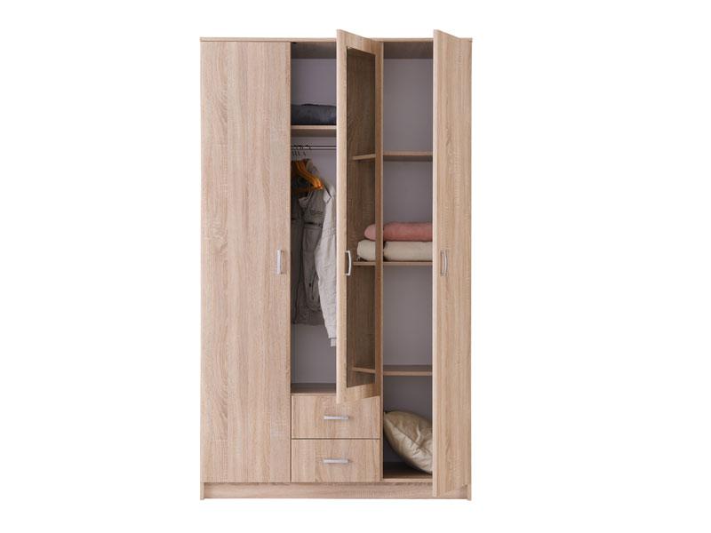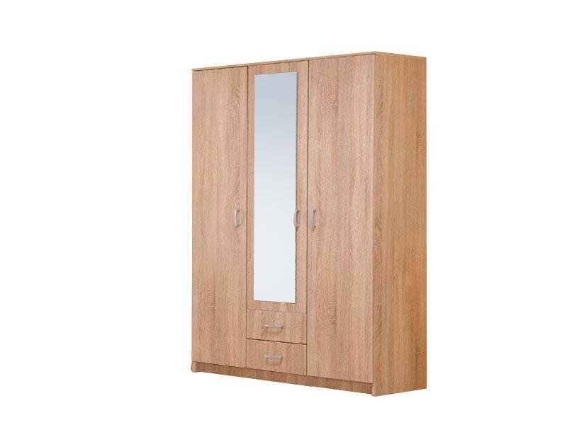 Elegantni trokrilni model ormara u sonoma hrast dezenu, sa garderobnom šipkom, tri police i dvije fioke, funkcionalno će doprinijeti organizaciji ambijenta. Ogledalo na središnjem dijelu ormara estetski će oplemeniti životni prostor.