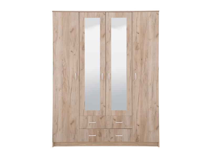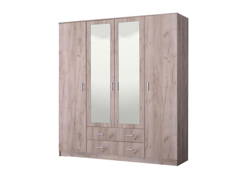 Elegantni model ormara u dezenu sivog hrasta, sa garderobnom šipkom u središnjem dijelu, četiri police i dvije fioke, funkcionalno će doprinijeti organizaciji ambijenta. Ogledala na središnjem dijelu ormara estetski će oplemeniti životni prostor.