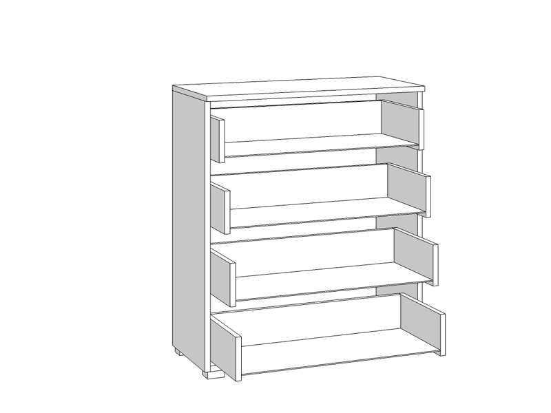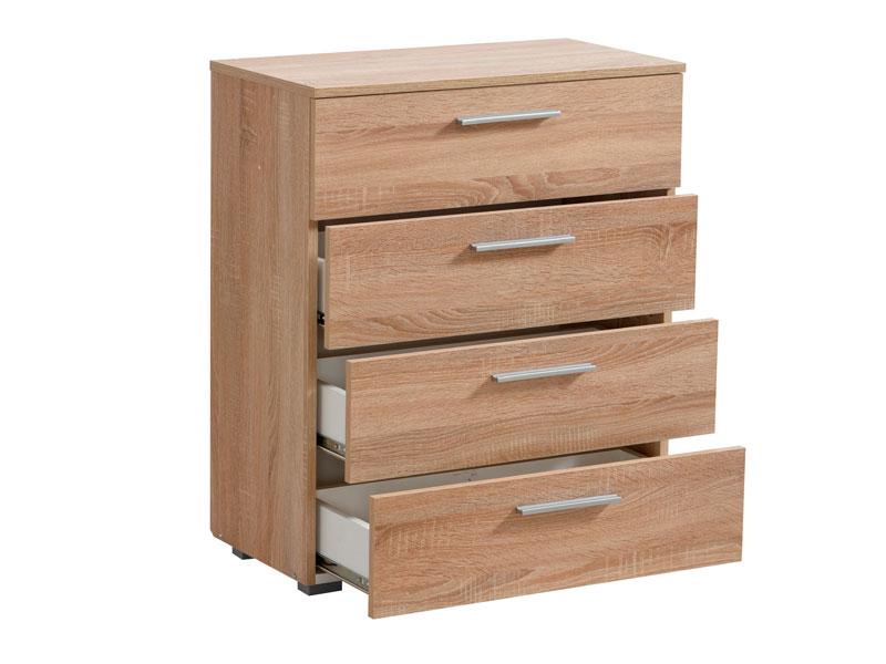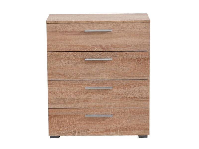 Ormar RITMO u dekoru sonoma hrasta, dio je kolekcije elemenata spavaće sobe. Posjeduje veoma praktično organizovan upotrebni prostor sa sistemom polica pozicioniranim desno i dijelom sa garderobnom šipkom i policom iznad nje na lijevoj strani. Dodatni estetski benefit je ogledalo u središnjem dijelu obostrano.