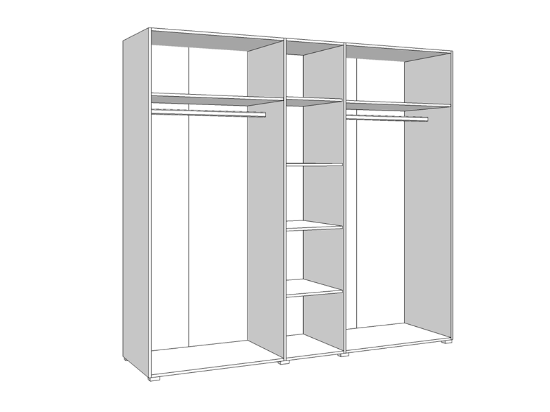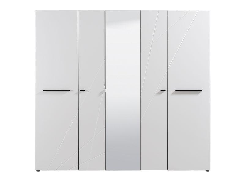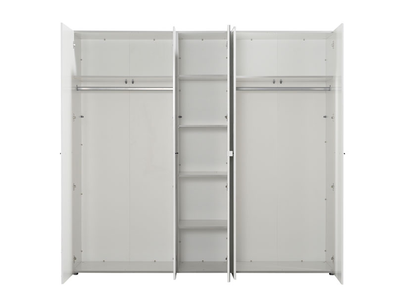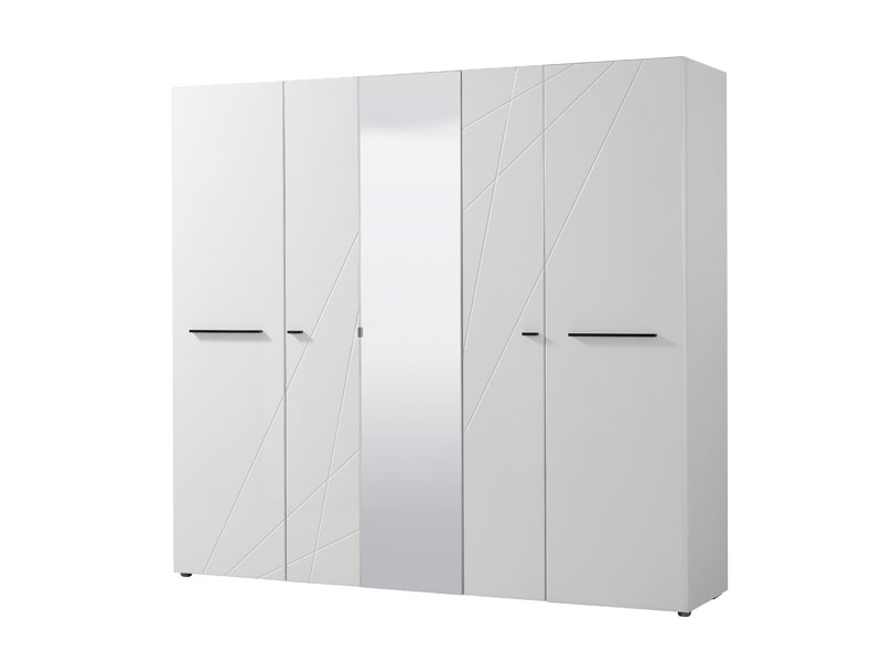 Ormar u opak bijelom dezenu sa frontovima presvučenim bijelom 3D MDF folijom sa aplikacijom, dio je kolekcije elemenata spavaće sobe. Upotrebni prostor je maksimalno iskorišten i sastoji se od seta polica u središnjem dijelu, i dvije garderobne šipke bočno pozicionirane. Ormar ima veliko ogledalo smješteno na centralnom dijelu. Posjeduje mogućnost dodavanja polica.