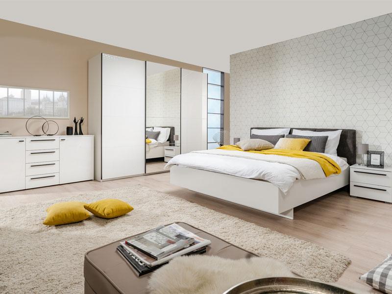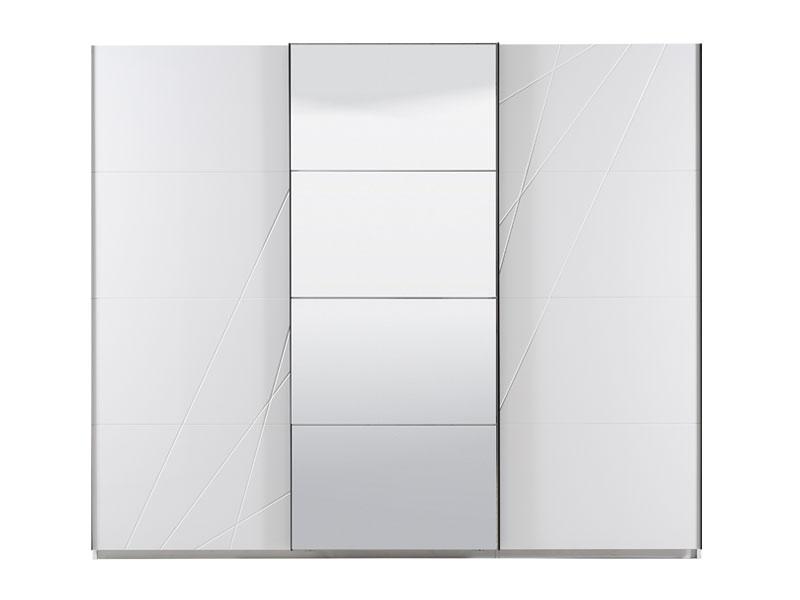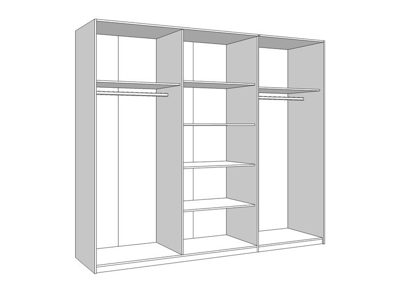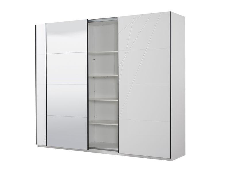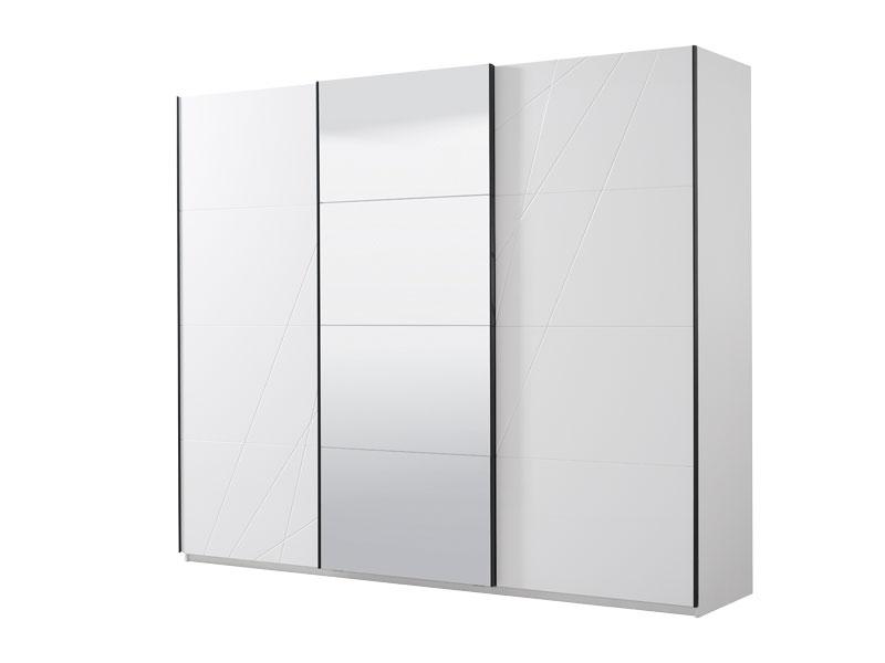 Garderober u opak bijelom dezenu sa frontovima presvučenim bijelom 3D MDF lak folijom sa aplikacijom, dio je kolekcije elemenata spavaće sobe. Posjeduje dvije garderobne šipke sa lijeve i desne strane, i četiri police u sredini. Garderober ima veliko ogledalo pozicionirano u centralnom dijelu. Posjeduje mogućnost dodavanja polica, kao i usporivača na bočnim vratima.