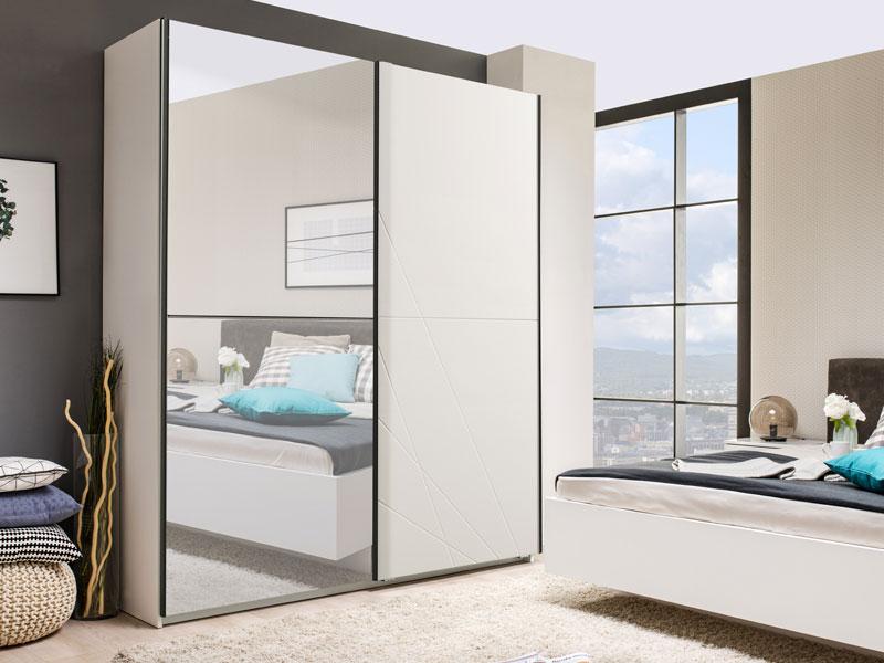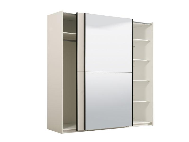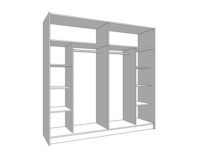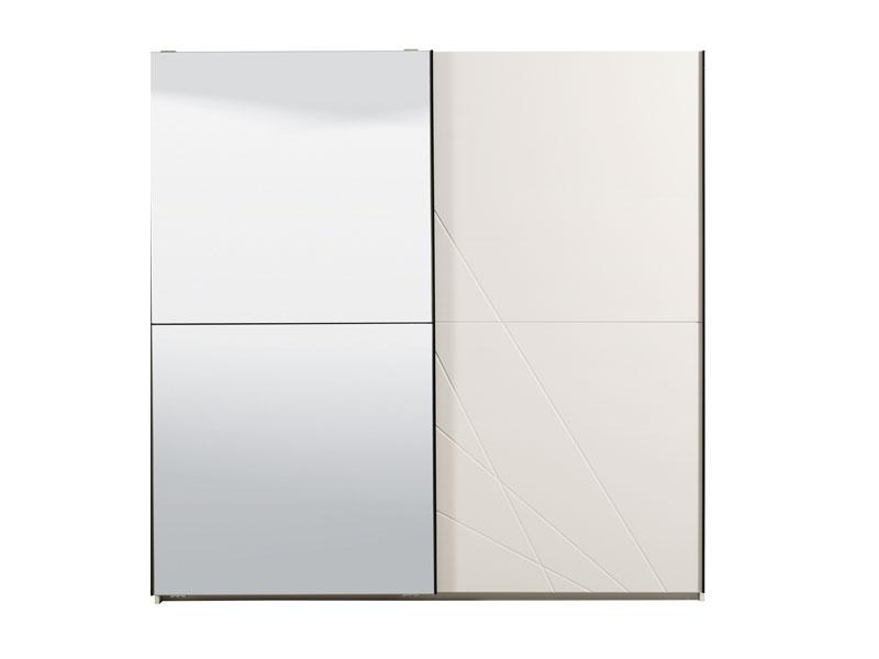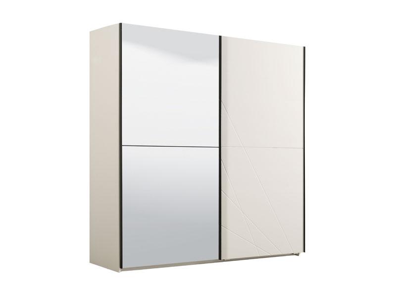 Garderober u kombinaciji opak bijelog dezena i bijelom 3D MDF lak folije sa aplikacijom, dio je kolekcije elemenata spavaće sobe. Ovaj model kliznog garderobera posjeduje garderobnu šipku u središnjem dijelu i police sa lijeve i desne strane. Garderober posjeduje ogledalo na lijevom kliznom elementu. Posjeduje mogućnost ugradnje usporivača kod kliznog mehanizma koji dodatno doprinose sigurnosti i funkcionalnosti.