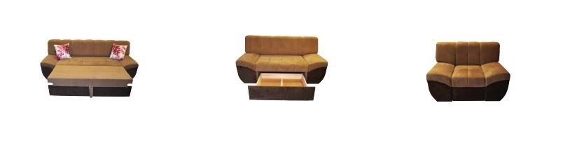 Trosjed na razvlačenje, dvosjed sa sandukom i fotelja Mogućnost promjene štofa- preko 300 dezena i boja
