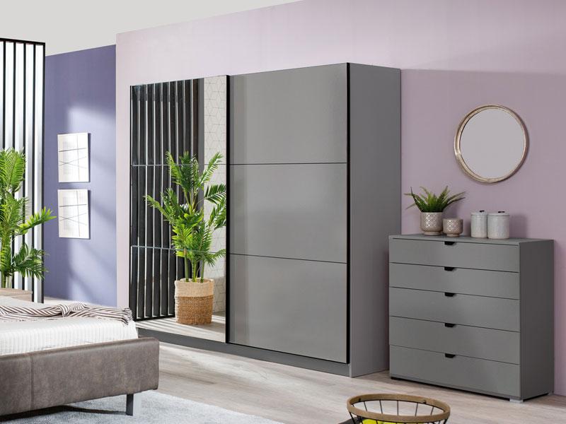 Garderober u grafit sivom dekoru predstavlja model garderobera savremenog dizajna i velike praktične upotrebne vrijednosti.