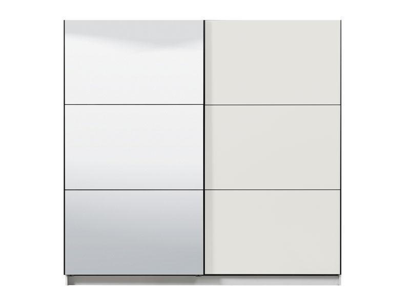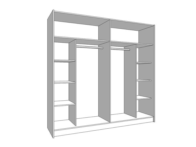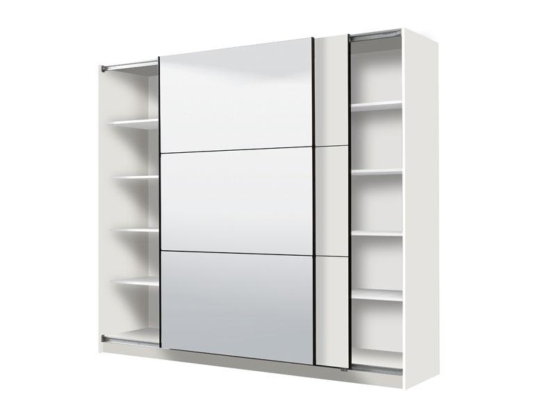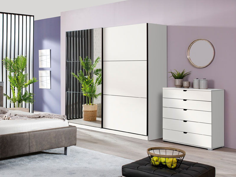 Garderober u opak bijelom dekoru predstavlja model garderobera savremenog dizajna i velike praktične upotrebne vrijednosti. Unutrašnjost se sastoji od segmenta sa policama u lijevom i desnom dijelu, kao i segmenta sa garderobnom šipkom u središnjem dijelu. Poseban benefit ovog modela je klizni mehanizam koji doprinosi ekonomičnoj organizaciji raspoloživog prostora, kao i ogledalo na lijevom kliznom elementu. Posjeduje mogućnost ugradnje usporivača kod kliznog mehanizma koji dodatno doprinose sigurnosti i funkcionalnosti.