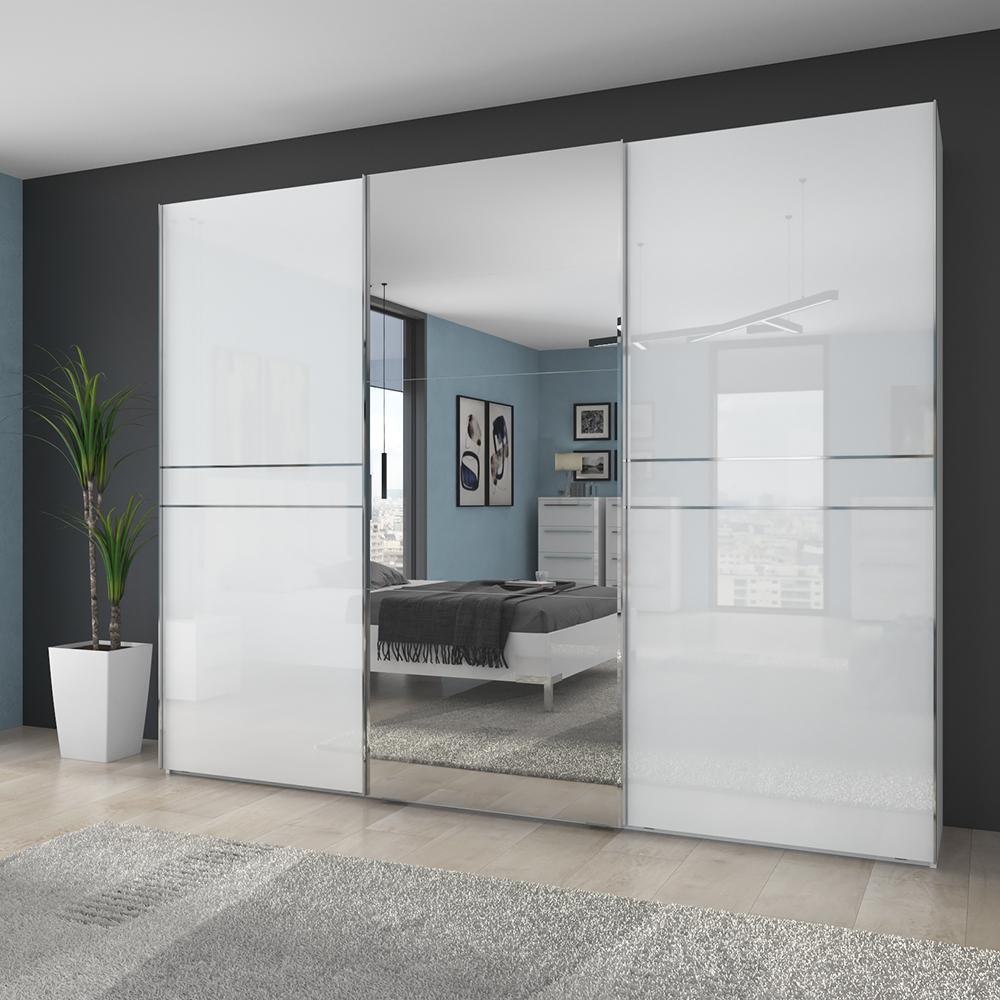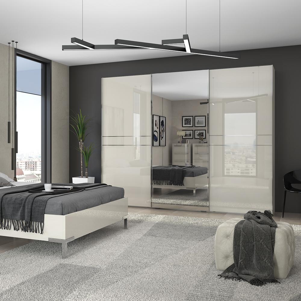 Trokrilni klizni plakar sa ogledalom na jednom krilu, dizajnirane geometrijske forme iz kolekcije namještaja PIANO.