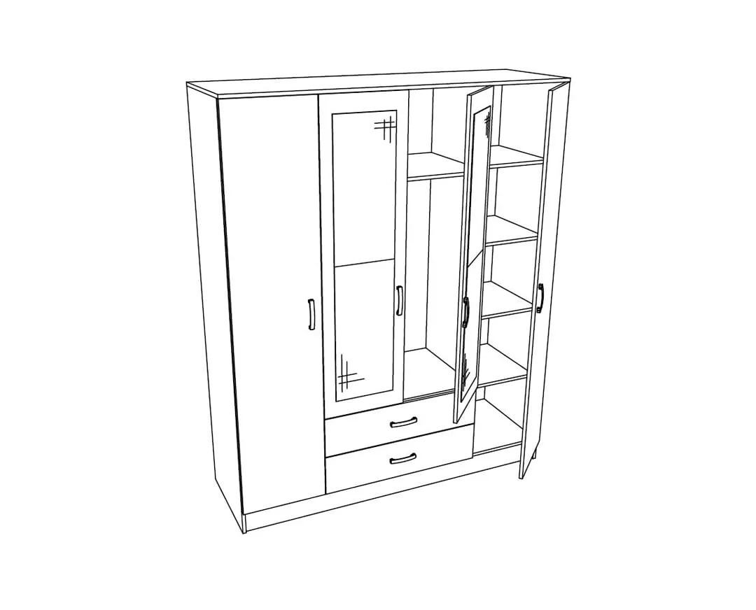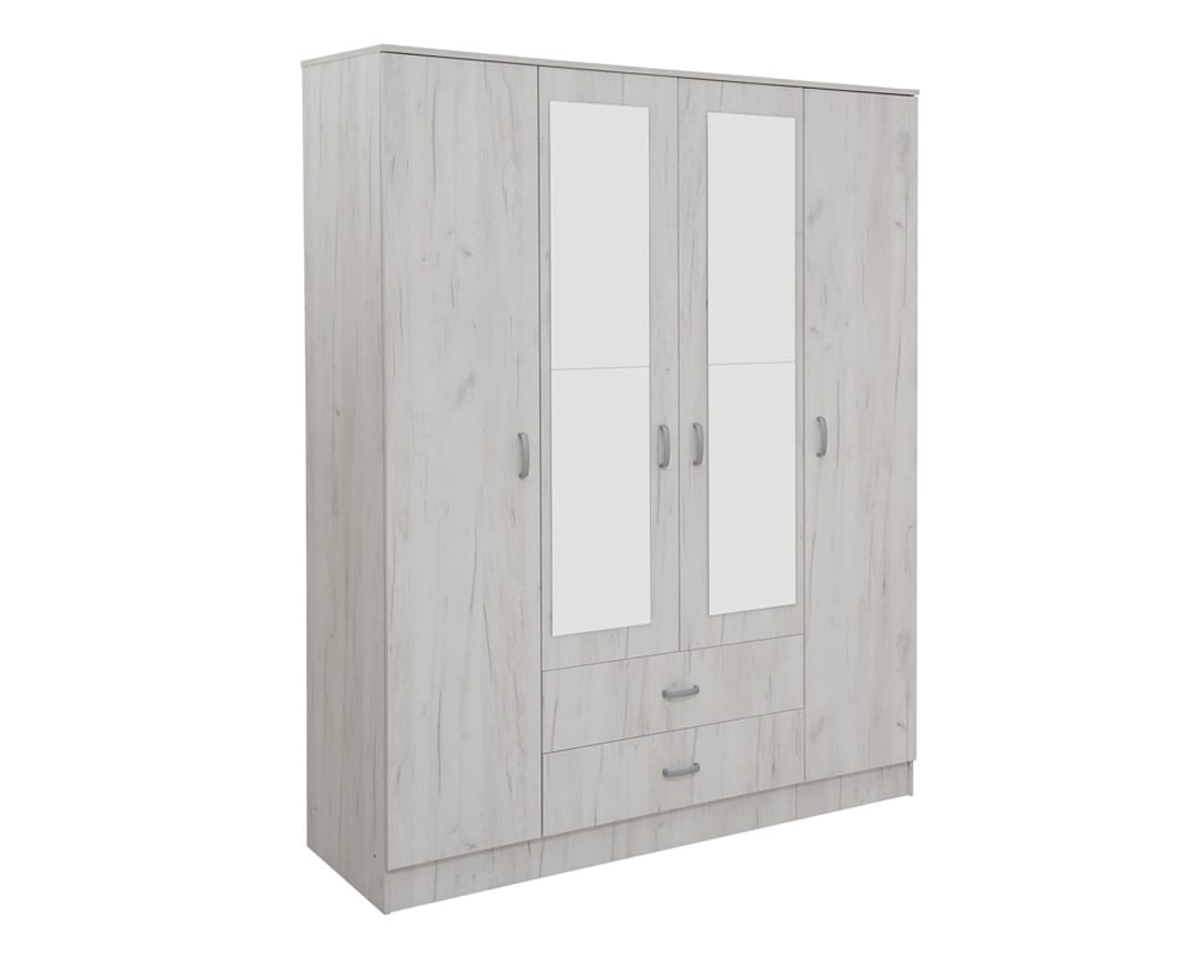 Ormar Iva 4K2FO predstavlja idealno rješenje za porodice sa manjkom korisnog prostora. Modernog i jedinstvenog dizajna, upotpunjenog ogledalima i funkcionalne unutrašnjosti, omogućit će vam uredno odlaganje garderobe.