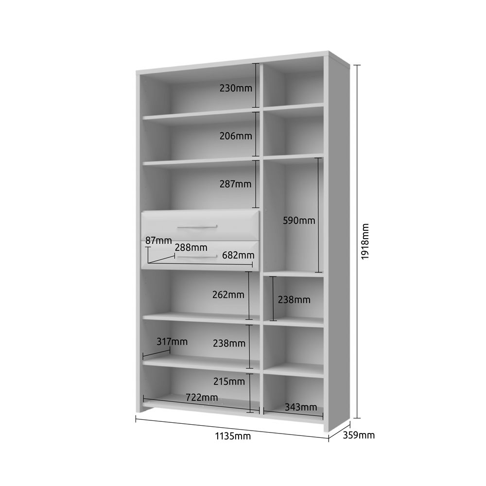 Vitrina za predsoblje iz kolekcije GALA sa pet krila i dve fioke, modernog dizajna i jake geometrijske forme.