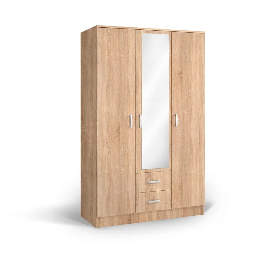 Ormar koji je praktičan za manje prostorije, izrađen od univera 16mm. Maksimalno iskorišten unutrašnji prostor garderobera koji je podijeljen na tri dijela, od kojih je jedan veći sa garderobernom šipkom, dok su u drugom police. Prednost ovog garderobera su i dvije fioke koje mogu da služe za odlaganje veša i ogledalo koje se nalazi na srednjim vratima.