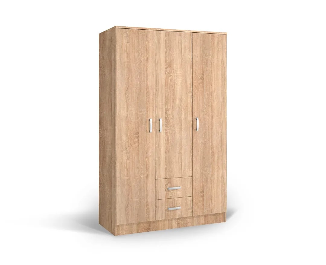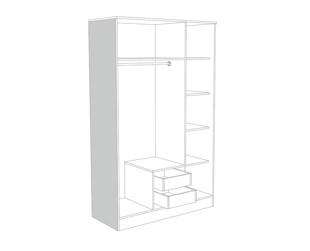 Ormar koji je praktičan za manje prostorije, izrađen od univera 16mm. Maksimalno iskorišten unutrašnji prostor garderobera koji je podijeljen na tri dijela, od kojih je jedan veći sa garderobernom šipkom, dok su u drugom police. Prednost ovog garderobera su i dvije fioke koje mogu da služe za odlaganje veša.