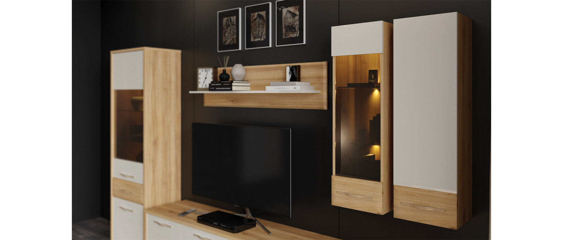 Stopsol staklo i led osvjetljenje u vitrini doprinose prijatnom ambijentu dnevne sobe