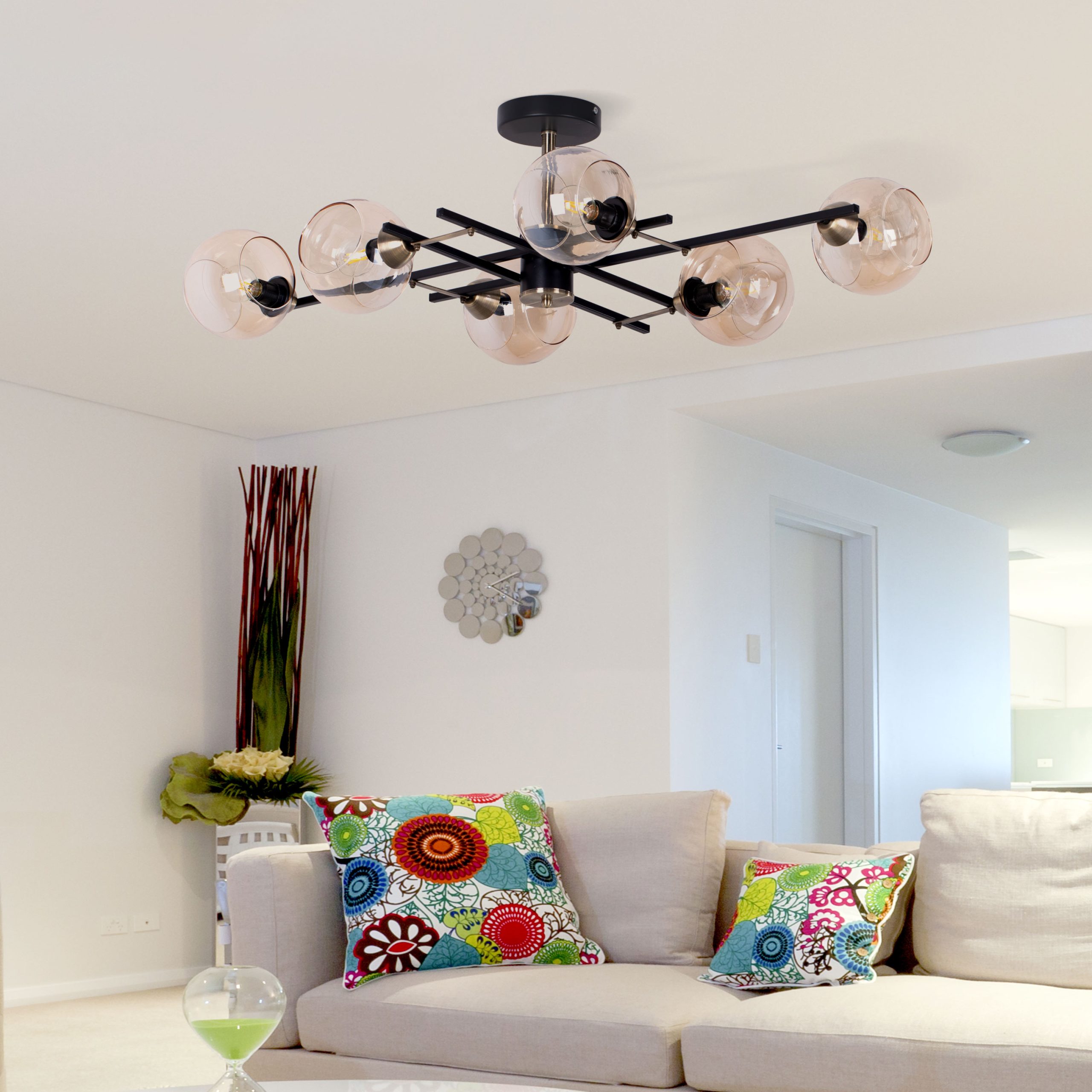 Boja crna+saten zlatna Materijal aluminijum+staklo Sijalice 6xE14 40W max Ulazni napon 220-240V Dimenzije 850x467x244mm Dimenzije stakla 133x100mm