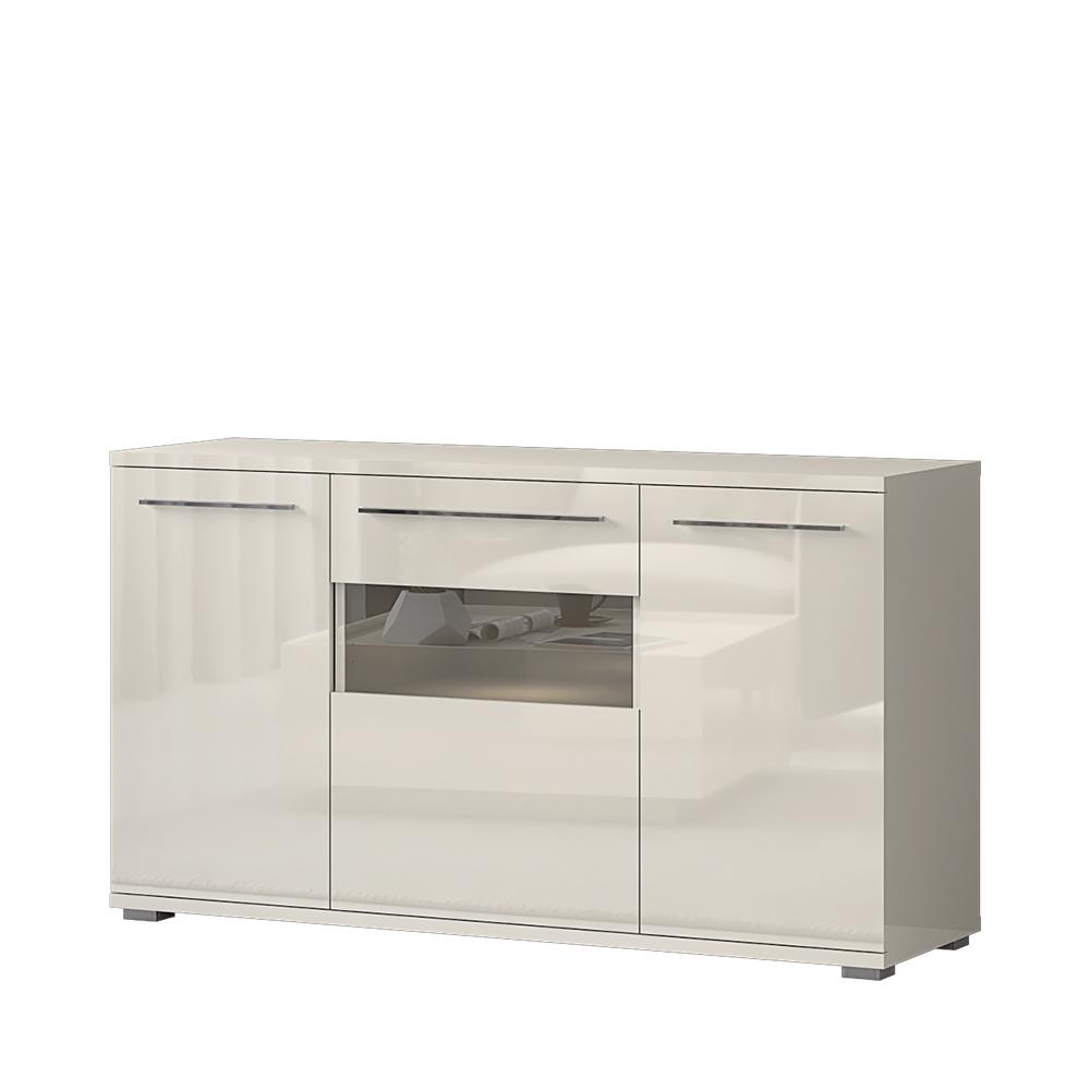 Funkcionalna komoda iz kolekcije namještaja PIANO sa dva puna i jednim staklenim krilom, dizajnirane geometrijske forme.