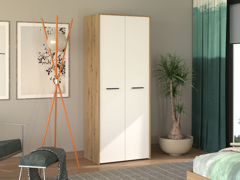 Ormar u dekoru artisan hrasta i opak bijele, dio je istoimene kolekcije elemenata spavaće/dječije sobe. Poseduje veoma funkcionalan upotrebni prostor sa sistemom polica, kao i dijelom sa garderobnom šipkom i policom iznad nje. Estetski se uklapa u skoro svaki ambijent.