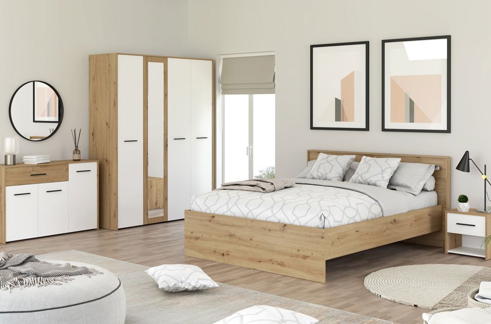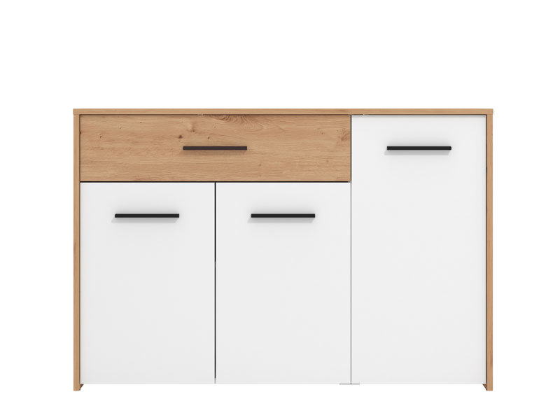 Komoda u dekoru artisan hrasta i opak bijele, dio je istoimene kolekcije elemenata spavaće/dječije sobe. Idealna je dopuna garderobnom dijelu zahvaljujući kombinaciji funkcionalne fioke i zatvorenih segmenata sa policom u središnjem dijelu.