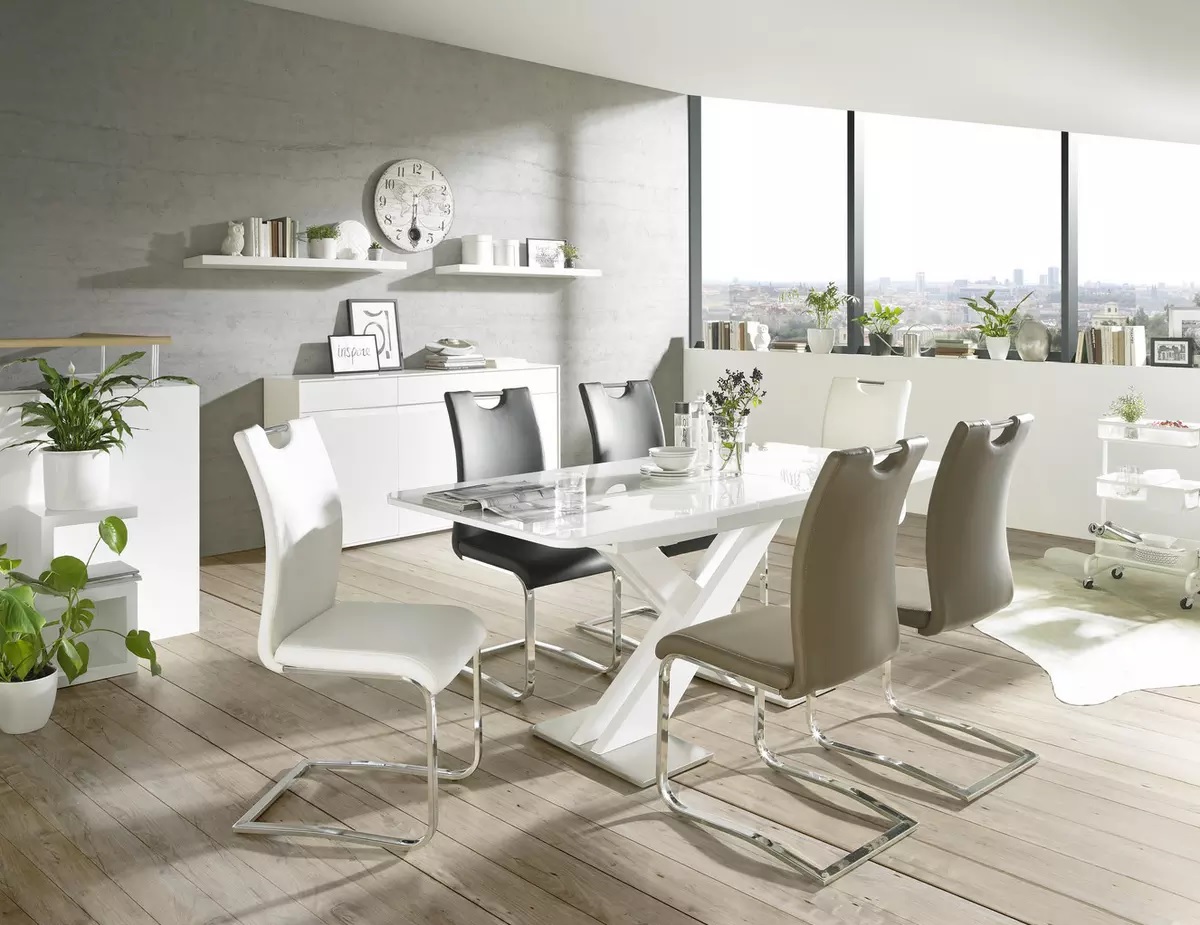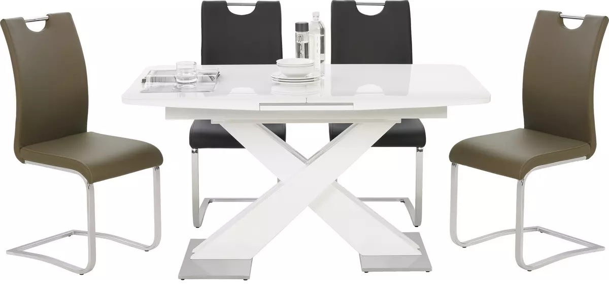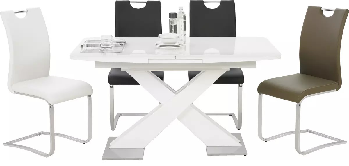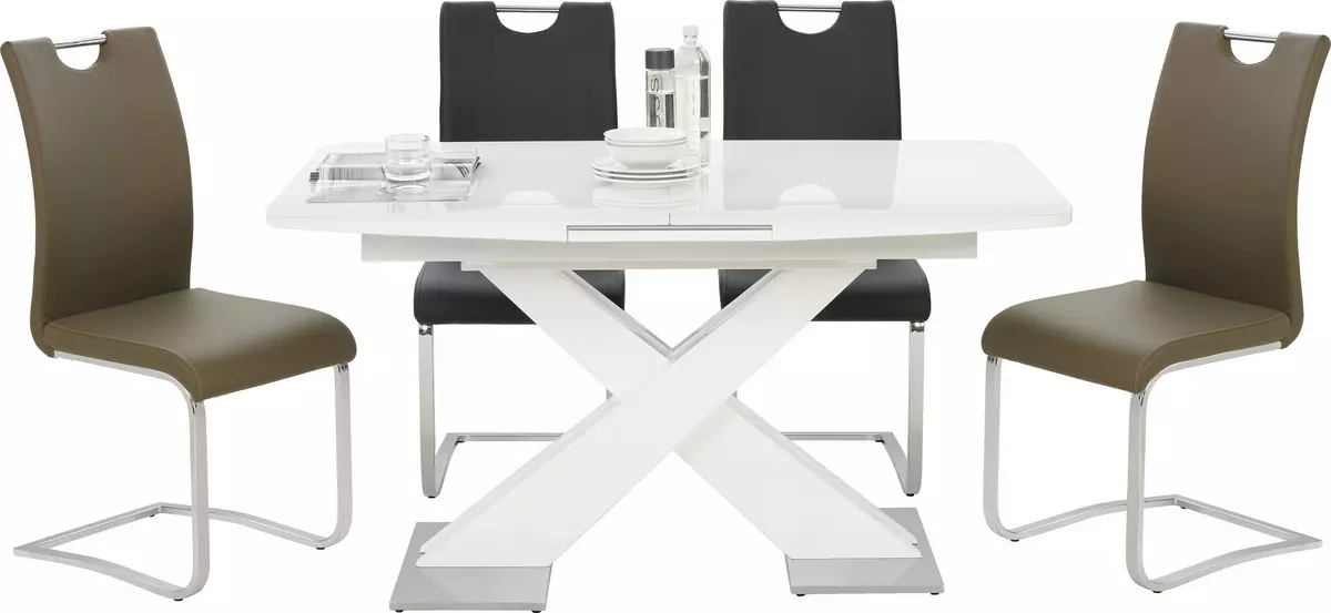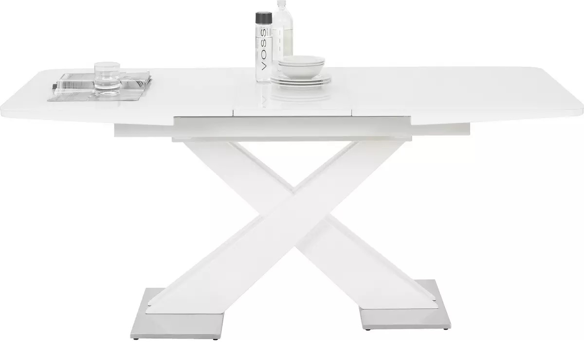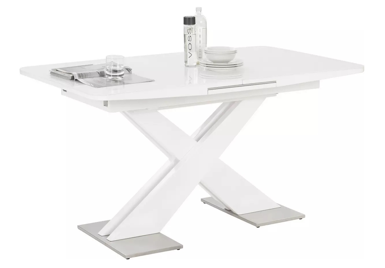 Dimenzije (dxšxv): 140-175x85x76 cm Boja: bijela visoki sjaj Materijali: MDF, metal Vrsta metala: nehrđajući čelik
