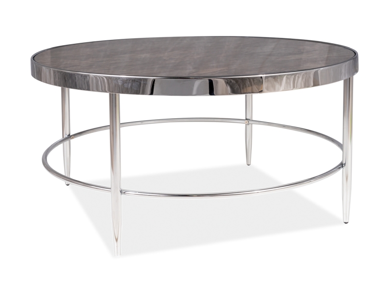 Stolić s metalnom kromiranom bazom izrađenom od visokokvalitetnog materijala. Stolna ploča je kaljeno staklo s mramornim efektom.