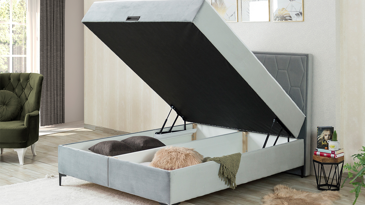 Ležaj posjeduje sanduk za odlaganje stvari.