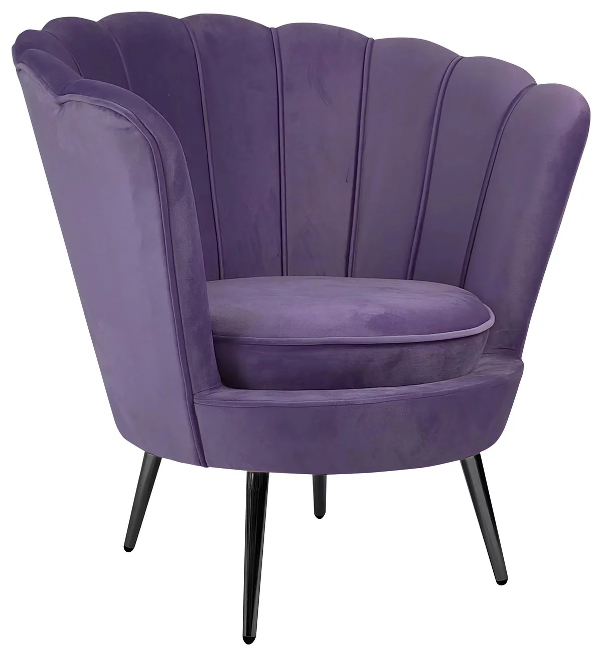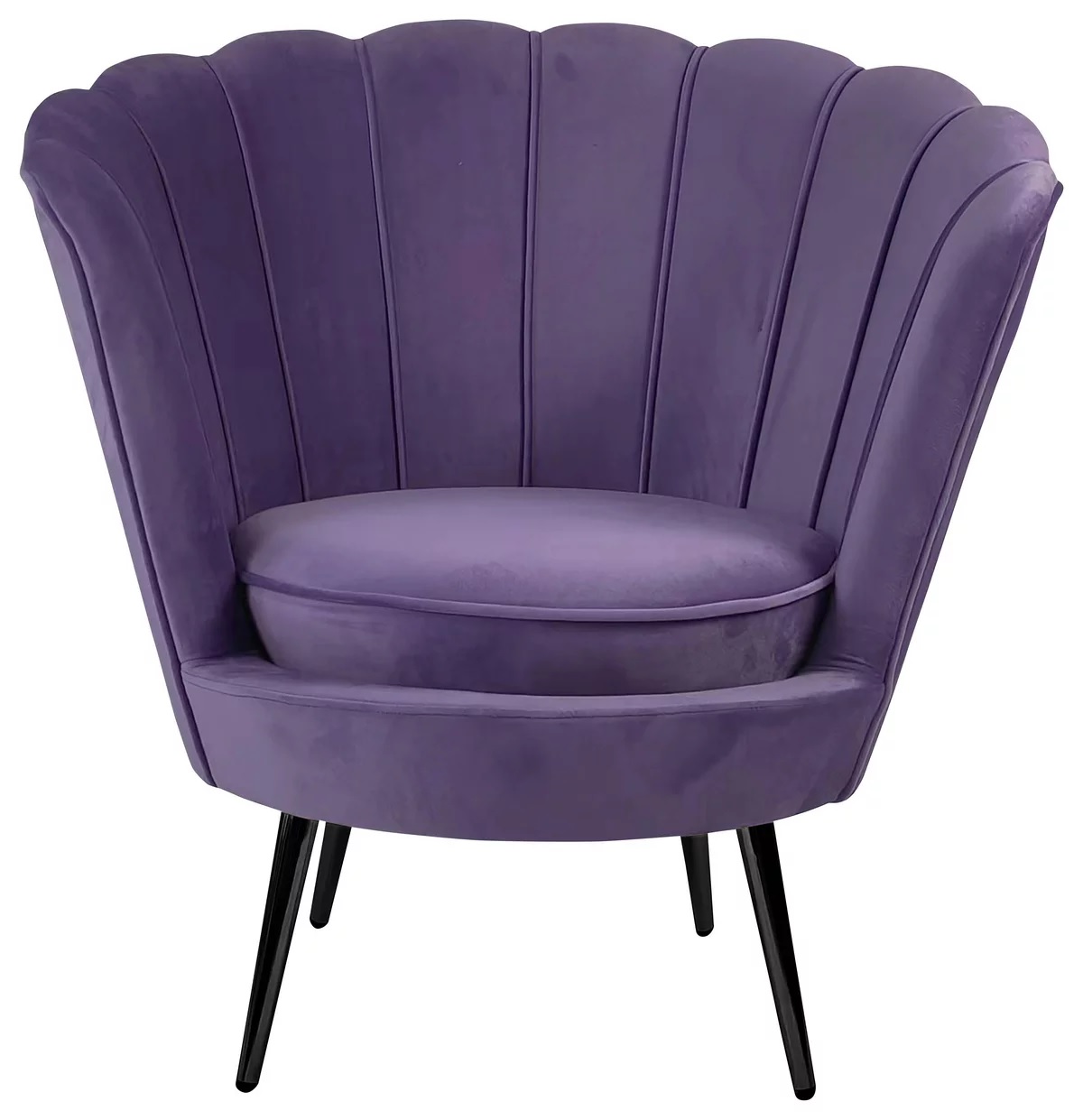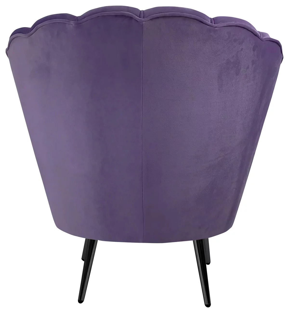Metalne crne noge, postavljene pod blagim kutom, dodaju suptilan dodir skandinavskog stila isprepletenog s retro elementima. Sa svojim kosim dizajnom i privlačnom ljubičastom bojom, ova fotelja je izvrstan izbor za one koji traže jedinstveni namještaj.