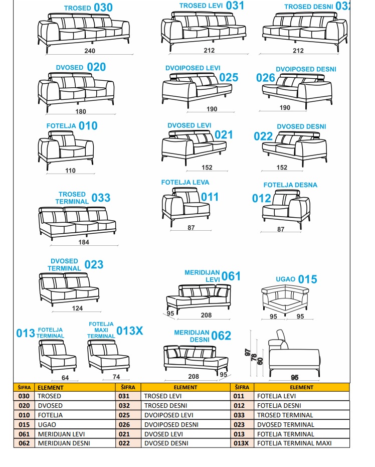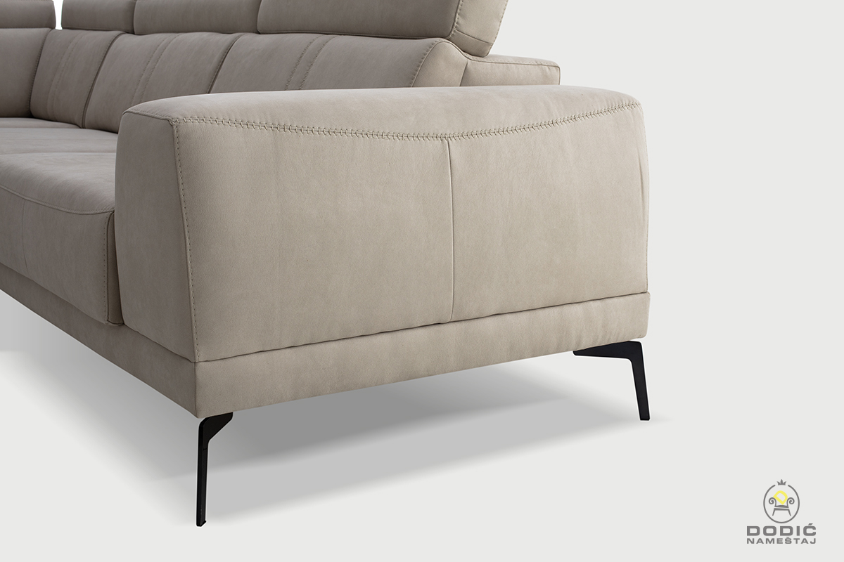 Dimenzije: 310x210 cm MOGUĆNOSTI: -Kupovine po elementima -Kupovine u štofu ili u koži -Promjene modela nogica (3 vrste)