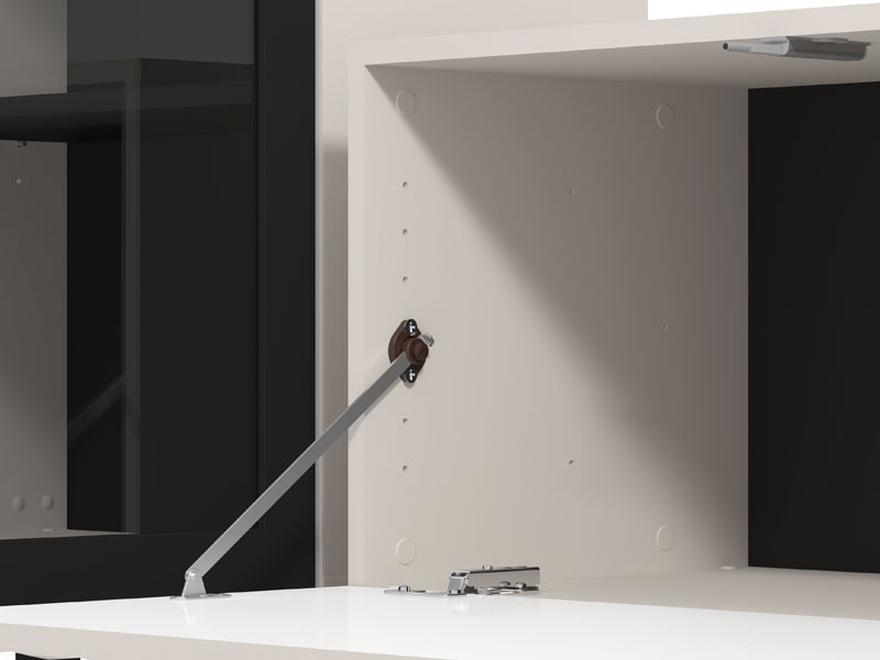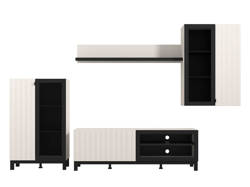 Regal u kombinaciji kašmir dekora, kašmir folije, crne i crne mat folije, dizajniran je da zadovolji funkcionalne i estetske zahtjeve u uređenju dnevne sobe.