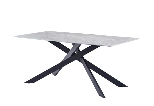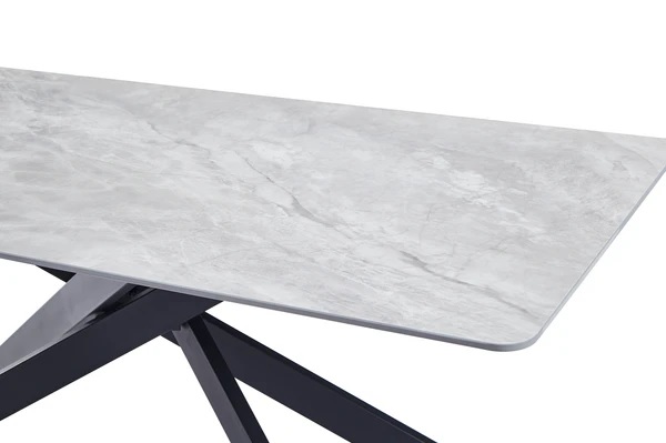 Prekrasan trpezarijski sto koji kombinira moderan stil sa klasičnim izgledom sivog mramora. Ploča stola, debljine 12 mm, izrađena je od sinteriranog kamena sa prelijepom mramornom šarom u sivoj boji, visokog sjaja.