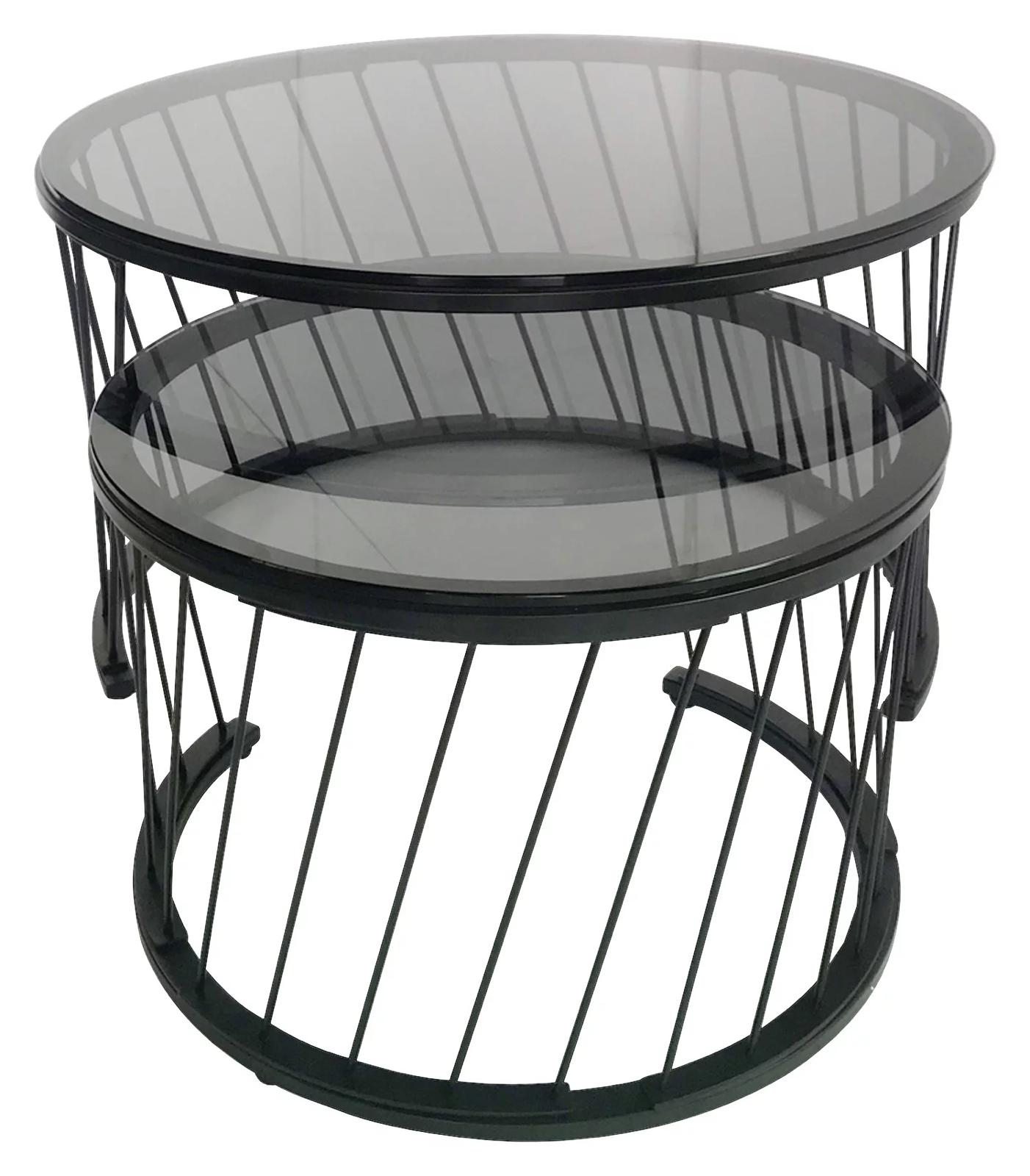 Nova garnitura stolića za kavu spaja šarm vintage stila s modernim dodirom, stvarajući iznimno atraktivan komad namještaja za vaš dom. Ovi stolići za kavu u kombinaciji crne i sive opremljeni su staklenim pločama stolova koje dodaju elegantan i osebujan dojam sobi.