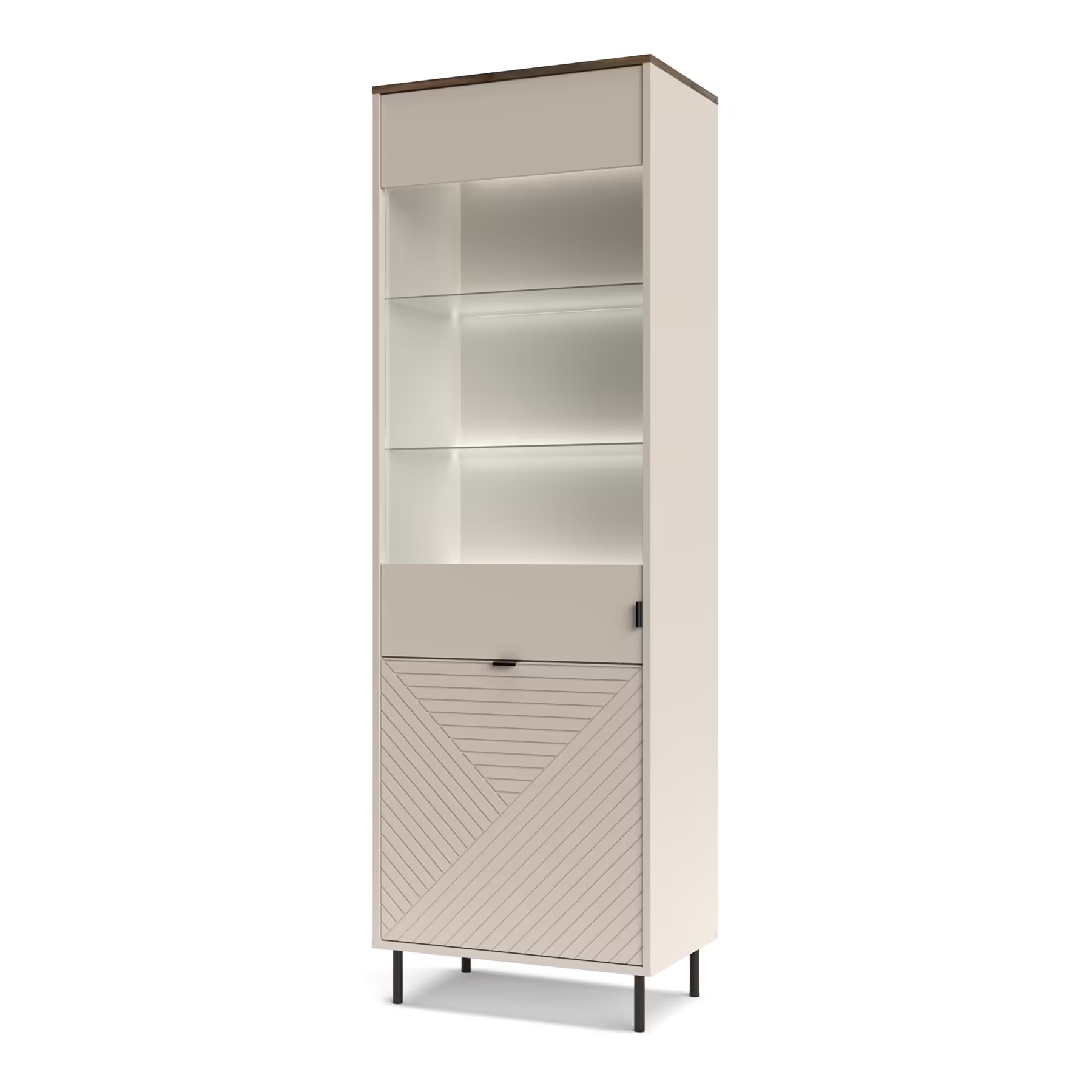 – Posjeduje led rasvjetu, soft close mehanizam, dekorativne metalne ručice i metalne nogice