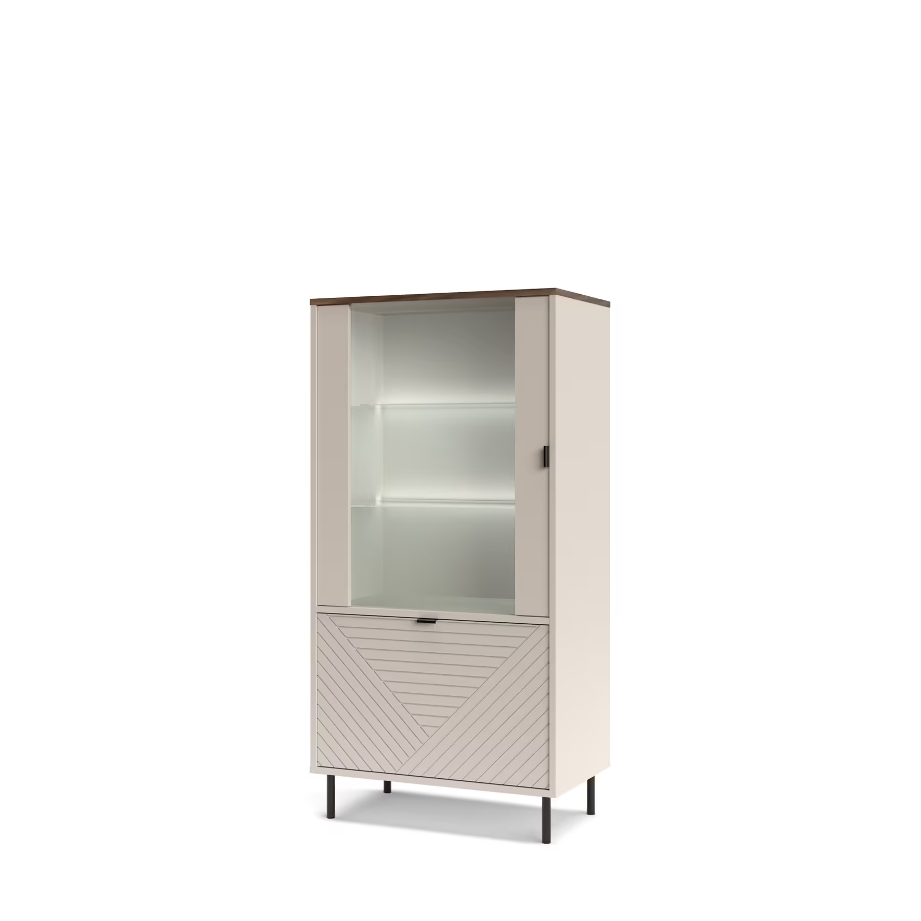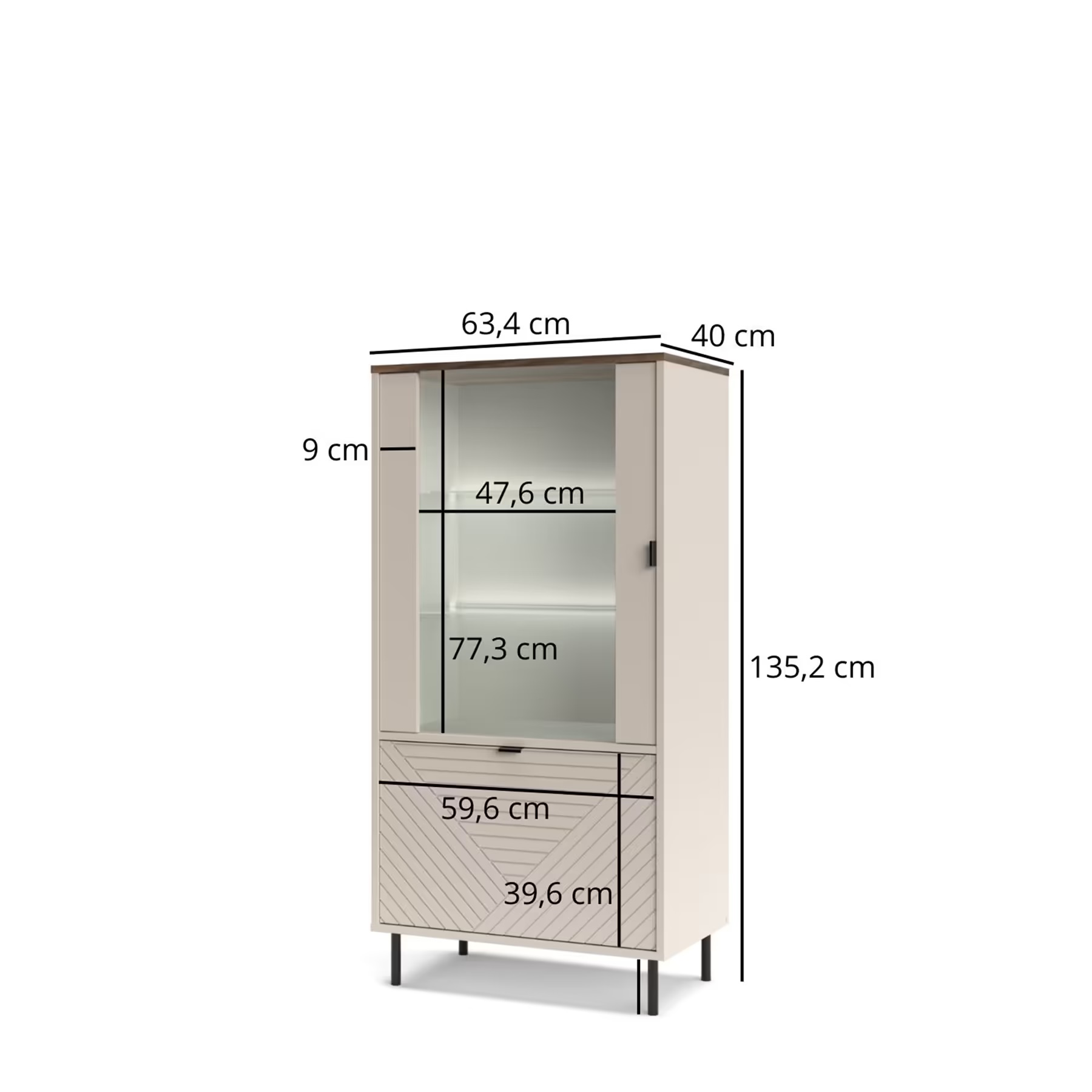– Posjeduje led rasvjetu, soft close mehanizam, dekorativne metalne ručice i metalne nogice