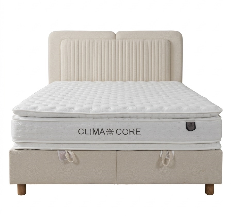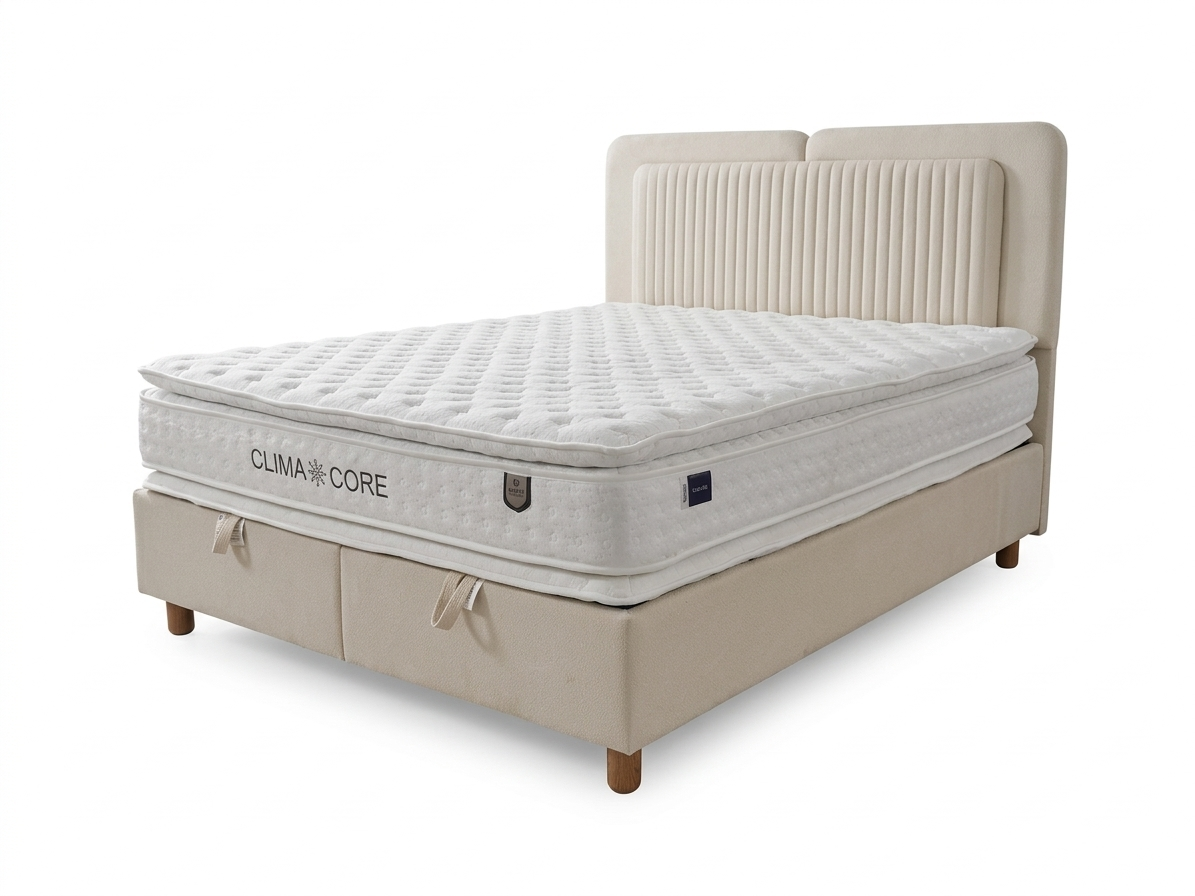 Dimenzije: 160x200 cm Boja: bež Madrac je uključen u cijenu kreveta. Krevet posjeduje sanduk za odlaganje stvari.