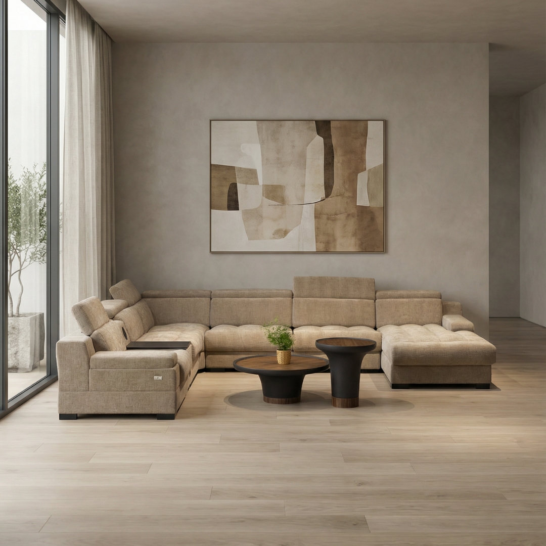 Modularna ugaona garnitura koja predstavlja savršen izbor za one koji žele da u svom domu imaju modernu i funkcionalnu garnituru sa izvanrednom udobnošću. Ova garnitura se sastoji od modularnih elemenata, što znači da se može prilagoditi bilo kom prostoru, od malih stanova do velikih dnevnih boravaka.