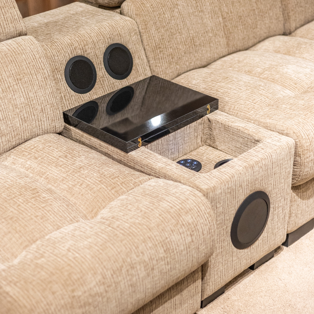 Jedna od glavnih karakteristika ove garniture je nevjerovatna udobnost koju pruža. Sjedišta su duboka i mekana, dok su nasloni za leđa udobni i pružaju podršku cijelom telu. Osim toga, ova garnitura ima i dodatke koji je čine još funkcionalnijom. Naime, posjeduje držače za čaše, što znači da nećete morati da brinete o tome gdje da ostavite piće tokom gledanja omiljene serije ili filma.